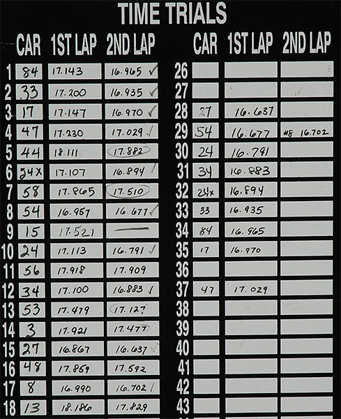 Gingras was fastest in time trials with a lap of 16.637 seconds, followed by Johnny Clark