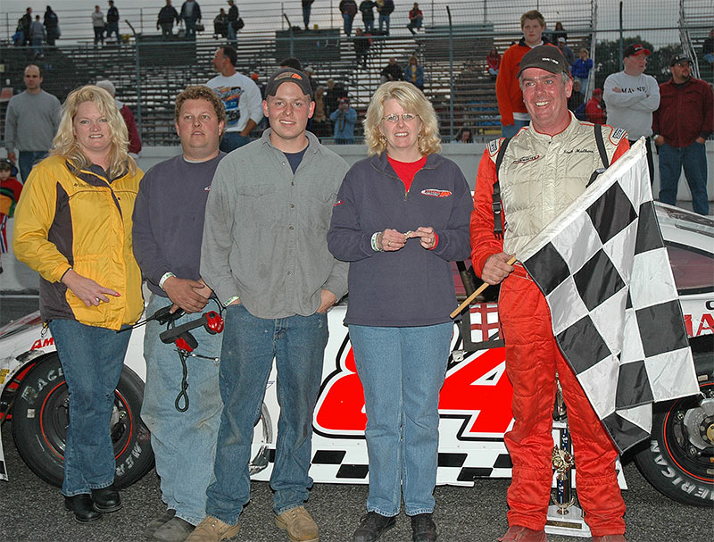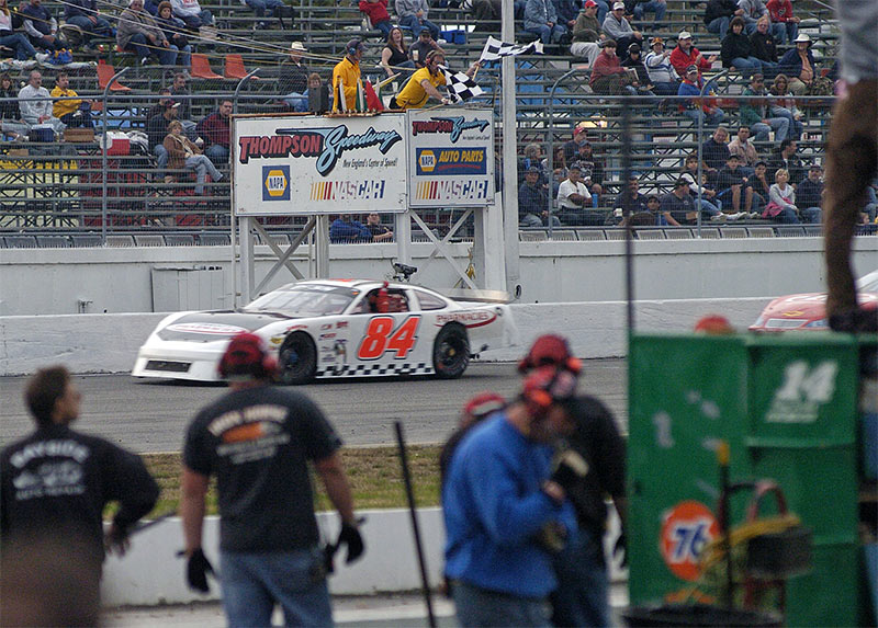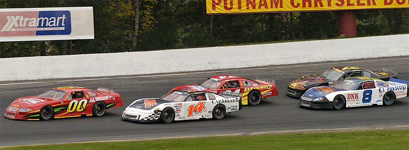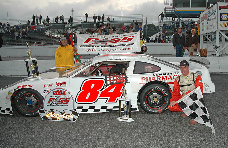 the top ten. Mulkern was fastest in Sunoco Race Fuel Time Trials, recording a lap of 19.509 seconds around Thompsons high banks to beat out Ben Rowe (19.642) seconds for the honors. Ted Christopher (19.644), Gordon (19.695), Gelinas (19.741) Richie Dearborn (19.747), Rick Martin (19.760), Johnny Clark (19.763) Cassius Clark (19.802) and Benjamin (19.816) were the fast ten that advanced to the Pole Dash. It was Martin over Christopher in the dash, setting up a rare all southern New England front row for the feature with Ben Rowe third, Cassius Clark lining up fourth, Mulkern inside row three and Richie Dearborn to his outside. Gelinas, Johnny Clark, Gordon and Benjamin completed the first five rows for the feature. At the green Christopher won a drag race with Rick Martin to grab the race lead and Ben Rowe quickly dispatched Martin to claim second spot. Early on it looked like Christopher might repeat his winning July performance, but Rowe made a move on the bottom stick and took over the point on lap nineteen. Meanwhile, Mulkern had worked his way up to third and was chasing down the front pair. Mulkern took second away from Chrsitopher on lap twenty six and was eating away at Rowes ten car length lead. One of the evenings three cautions flew on lap thirty-five for Gary Smiths day-ending spin, setting up the deciding restart for Rowe and Mulkern. When the green flew Mulkern made what was to be the race winning move on Rowe to claim the victory. Christopher fell victim to a flat right rear tire while running third and came home twenty-sixth at the finish. Johnny Clarks ninth place finish was more than enough to earn the Farmingdale Maine racer his first Pro All Stars Series Championship. Unofficially, Clark unseated two time and defending PASS Champion Ben Rowe by a margin of thirty-eight points. Mike Rowe and Travis Kheil earned heat race wins, and 2004 PASS/Northern Race Tires Rookie of the Year Donnie Whitten capped his rookie campaign by capturing rookie of the race honors for his twelfth place finish. Prior to the start of the Octoberfest 100, The Cumberland Farms You Pick the Race contest winner was drawn and Yvette Reed of Lunenburg Massachusetts was the lucky winner. Yvette wins two tickets, airfare and hotel accommodations to the race of her choice in 2005, courtesy of the Pro All Stars Series and Cumberland Farms. While the fifteen race points paying season is wrapped up, many Pro All Stars Series teams will travel to Autodrome Montmagny Quebec on Saturday October 9th for the $26,000.00 (U.S.) All Star Challenge 200, Sponsored by Autobus la Quebecoise. Time trials get the green at 1:30 PM. For more information, please visit www.ProAllStarsSeries.com . Official Order of Finish Pro All Stars Series race #15 PASS Octoberfest 100 Thompson International Speedway E.Thompson CT 10/2/04 1) 84 Scott Mulkern, Falmouth ME - Community Pharmacies Dodge 2) 00 Ben Rowe, Turner ME - Mechanical Services Chev 3) 24 Mike Rowe, Turner ME - K&K Excavating/Lux Ent. Chev 4) 8 Cassius Clark, Farmington ME - E.J. Prescott/DNK Ford 5) 14G Tracy Gordon, Strong ME - CAP Trust Financial/SNF Crane Chev 6) 37 Larry Gelinas, Scarborough ME - Digbys Variety Chev 7) 17 Travis Benjamin, Morrill ME - Belfast Variety Ford 8) 54G Gege Gravel, Groton MA - Downeast Drilling/Eliminator Inc. Chev 9) 54 Johnny Clark, Farmingdale ME - DNK Select Used Cars/Clarks Cars and Parts Chev 10) 24K Travis Kheil, Denmark ME - Frechette Tire/K&W Timberlands Chev 11) 14 Rick Martin, Westport MA - G. Lopes Construction Chev 12) 83 Donnie Whitten, Biddeford ME - Richard Moody & Sons Construction Chev 13) 1M Norm Wrenn, Nashua NH - Lamoreaux Ford Chev 14) 37W Scott Watts, Seabrook NH - Watts Race Cars Chev 15) 55 Bobby Cabral, E. Kingston NH - RAM Printing WDW Machine Chev 16) 15 Chris Perley, Danbury CT - Lamontain Bros. Chev 17) 48 Chuck Docherty, Northbridge MA - Superior Oil/Morrisette Burner Service Ford 18) 33 Richie Dearborn, Hollis ME - Chadwick BaRoss/Dayton Sand and Gravel Chev 19) 35 Garry Johnson, Hollis ME - Johnson Trucking/Watson Racing Heads Chev 20) 73 Chris Ross, Malta NY - Archibee Construction Chev 21) 70 Walt Sutcliffe, East Haven CT - Chev 22) 18 Michael Rutkamp, Wilton CT - Mercury Sports Energy Chev 23) 0 Dennis Maxfield, Fitchburg MA - Dunkin Donuts Chev 24) 24X Gary Drew, Otisfield ME - Pullen Heavy Industries Chev 25) 43 John Studley, Raynham MA - Circle Performance Ford 26) 34 Ted Christopher, Plainville CT - North East Recycling Chev 27) 32 Luke Fernald, Great River NY - Chev 28) 2 Todd Patnode, Swanzey NH - Patnode Oil Chev 29) 81 Alan Tardiff, Lyman ME - Tardiffs Garage Chev 30) 47 Corey Williams, Boothbay ME - Midnight Oil Co. Chev 31) 66 Andy Shaw, Ctr, Conway NH - Stan Morris Construction /Currier Auto Group Chev 32) 12 Liane Lombardi, Manchester CT - Sunoco Race Fuel Chev 33) 42 David Macomber, Maryville NY - Chev 34) 97 Walt Hammond, Canaan NH - Carpet Mill Chev 35) 3 Mike Maietta Sr., So. Portland ME - Maietta Construction Chev 36) 81x Todd Owen, Somers CT - Cooker Construction Chev 37) 75 Gary Smith, Bangor ME - UncleHenrys.com Chev |