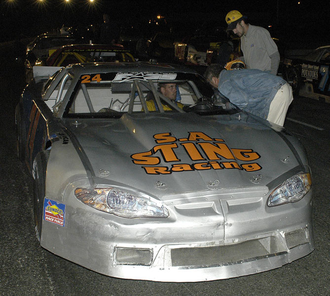 Saturday night. Sessions and his Typar Housewrap/AMF Custom Metal Fabrication Monte Carlo